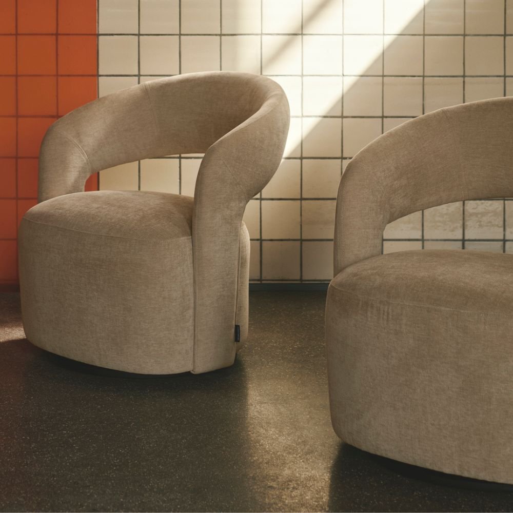 A stylish swivel base armchair inspired by the early James Bond movies.
